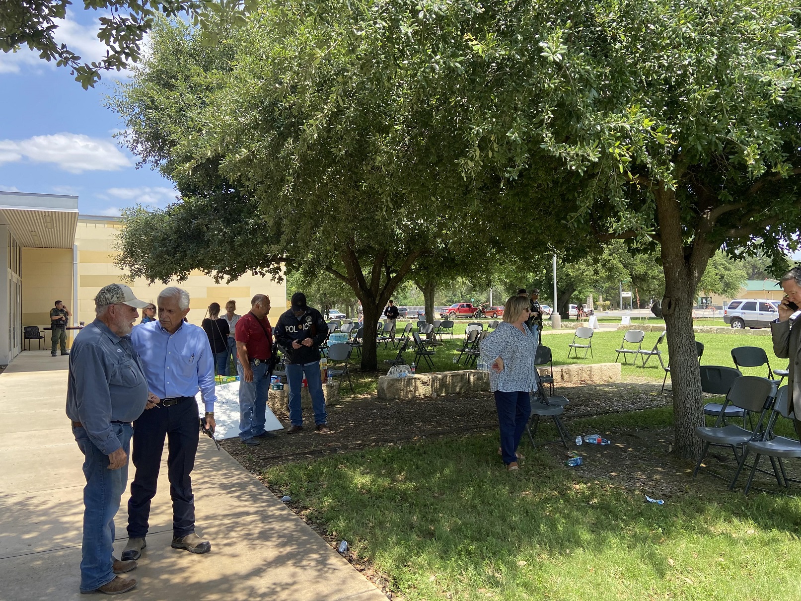 Uvalde ISD School Superintendent Hal Harrell was with law enforcement near the police perimeter and a few moments later met with police a few hundred yards from the front of Robb Elementary School.