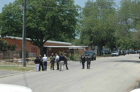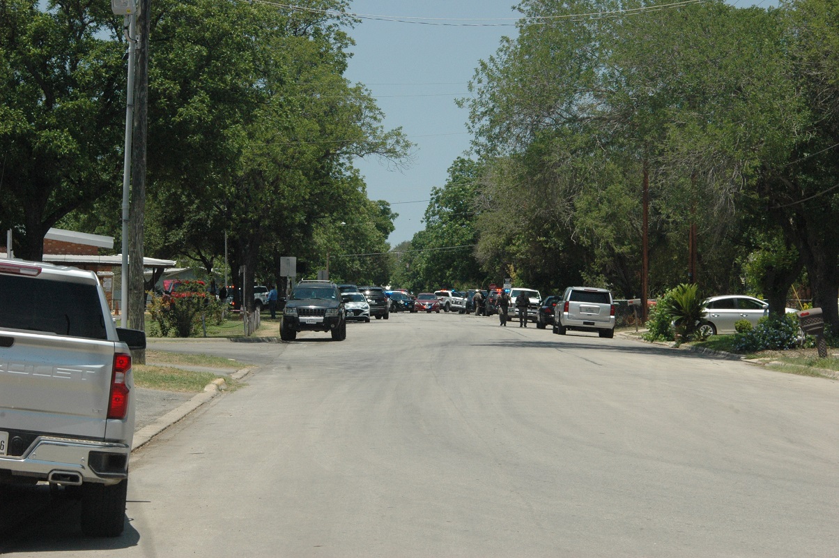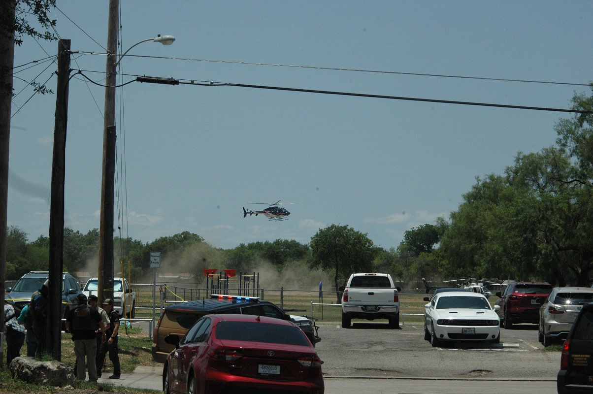 The Uvalde Hesperian arrived near Robb School approximately at 1:02 PM and at that time helicopters could be seen landing in a field near the school. Prior to arriving, on Hwy 83 South near the intersection of High Street school buses escorted by law enforcement vehicles were seen leaving the area. One of the buses was seen, stopped momentarily and even through closed windows children could be heard screaming and crying.