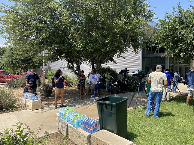 Between 2:45 PM and 3:45 PM, news stations from San Antonio and other locations outside of Uvalde started arriving at the SSGT Willie De Leon Civic Center for a press briefing which occurred at 4:16 this afternoon. School officials and parents were allowed into the Civic Center. Several parents entering the Civic Center were crying and appeared to be in a state of shock.