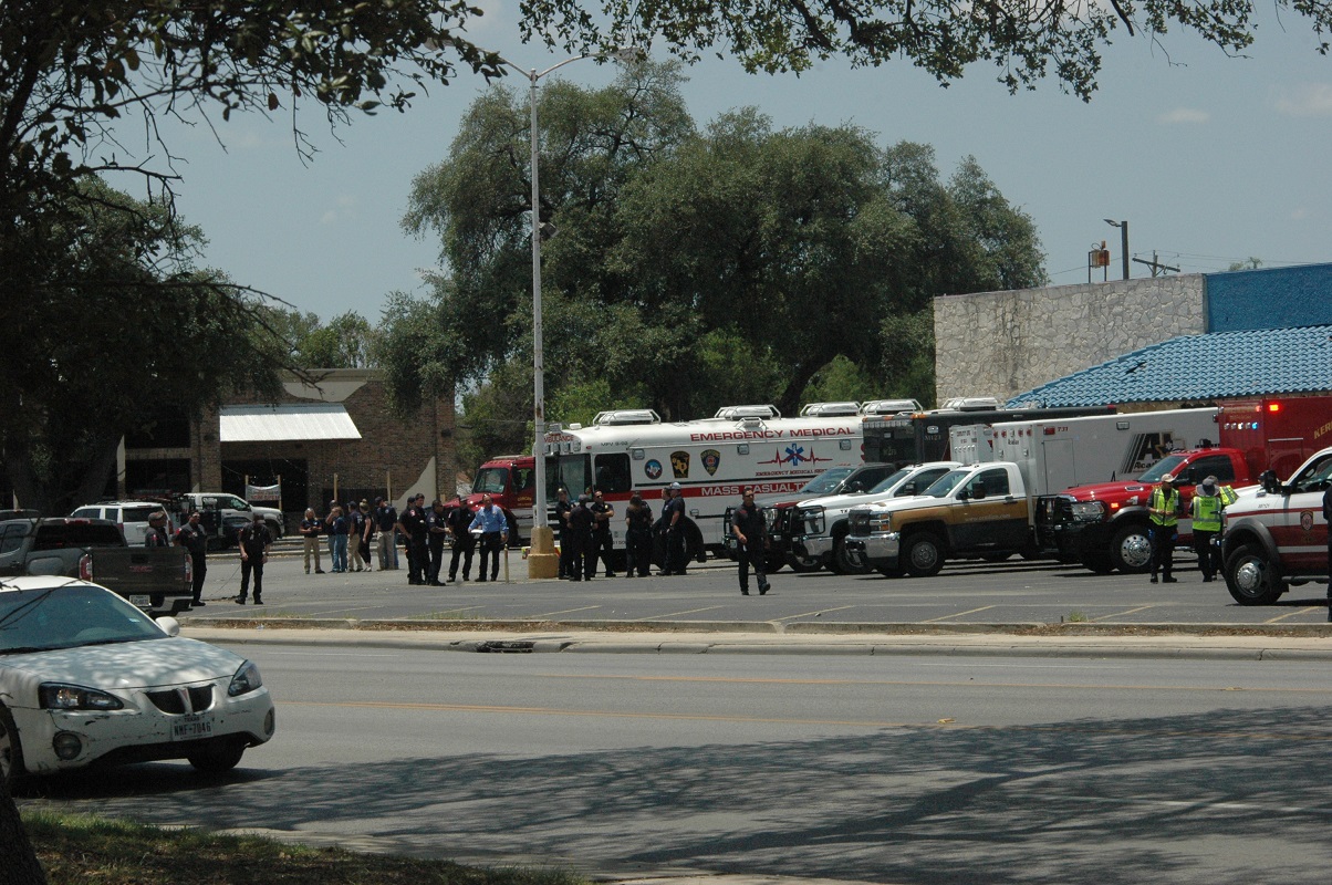 The Old Super S Grocery store parking lot located on 300 West Main in Uvalde was filled with ambulances and emergency responders. The location was being used as a staging area.